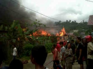 Kebakaran yang menghanguskan lima rumah tunggal dan satu rumah bangsal di Sei Pinang Dalam, Samarinda, Rabu (15/6/2011).