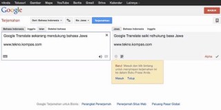 Sistem terjemahan bahasa Jawa dalam Google Translate berstatus "Alpha", atau masih dalam tahap awal pengembangan.