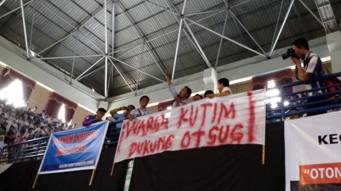Ribuan masyarakat Kabupaten Kutai Timur (Kutim) dari berbagai elemen hadir dalam aksi bersama mendukung pemberlakuan status otonomi khusus Provinsi Kalimantan Timur, Selasa (6/1/2015).