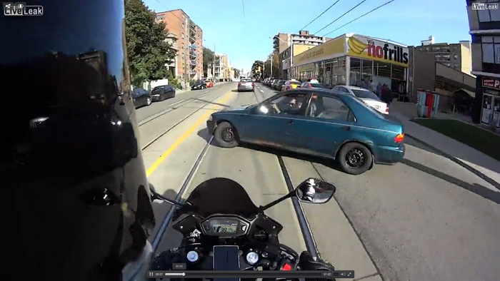 Aksi tabrakan ini terekam dengan kamera aksi yang terpasang di kanan helm yang ia kenakan. Bahkan kemara tersebut juga sempat merekam bagaimana pengendara terjungkal ke dari motornya.
