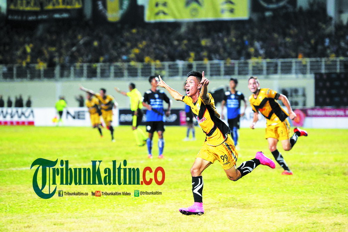 TRIBUNKALTIM.CO, TENGGARONG - Mitra Kukar berhasil unggul sementara, 2 - 1 atas Arema Cronus. Yogi Rahadian menggandakan gol pada menit 74.