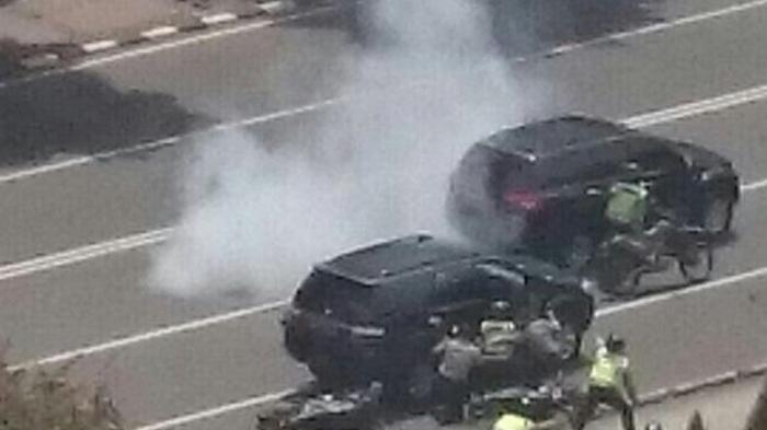 Setelah ledakan terjadi Sopian keluar dari Starbucks.