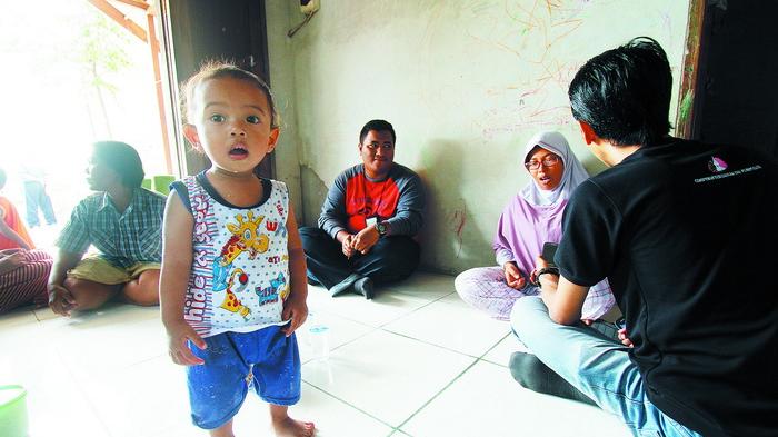 Ibu kandungnya, Junita (25) membalas tawa anak laki-lakinya dengan senyum, sambil menahan pilu akibat menunggu kepastian keselamatan suaminya yang tak kunjung tiba.