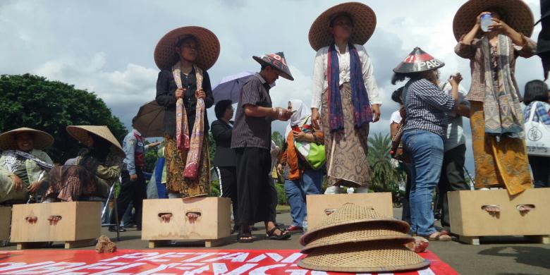 Sembilan Kartini tersebut melakukan aksi mengecor kaki sebagai bentuk protes terhadap pendirian pabrik semen, Selasa (12/4/2016) siang. Mereka ingin berdialog bersama Presiden Joko Widodo.