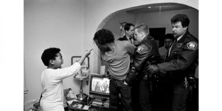 Seorang anak melihat ayahnya ditangkap. Dia berkata, "aku membencimu karena kamu memukul ibuku! Jangan kembali ke rumah ini lagi!"