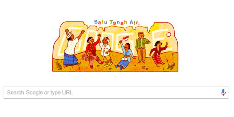 Mereka menyerukan ucapan Satu Tanah Air, Satu Bangsa, dan Satu Bahasa yang muncul bergantian di bagian atas Doodle.