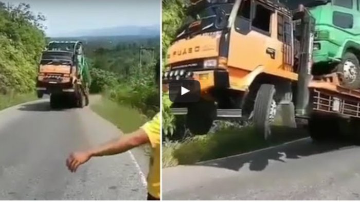 Hingga akhirnya saat kondisi jalan sudah rata dan normal, truk itu pun bisa kembali kepada posisi semula.