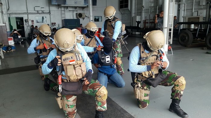 Aksi tim penindak Kopaska TNI AL mengamankan bos teroris di Kapal Teluk Banten, Kamis (10/8/2017).