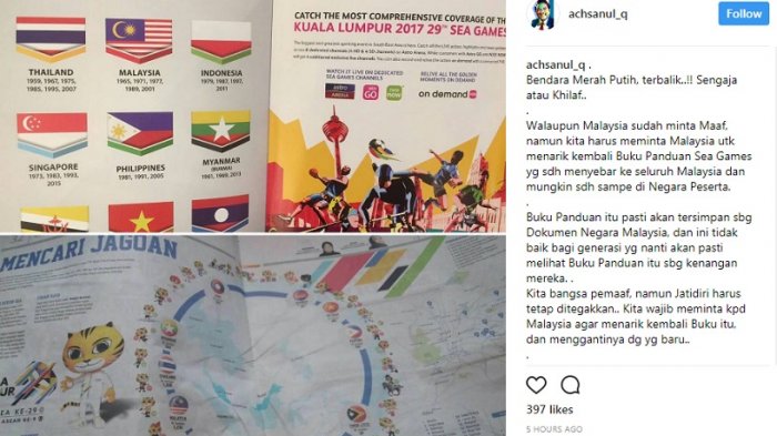 Hal ini membuat warganet menjadi panas hati. Bagaimana tidak, dalam buku panduan yang dibagikan kepada seluruh negara peserta negara SEA Games 2017, bendera Indonesia dicetak terbalik.