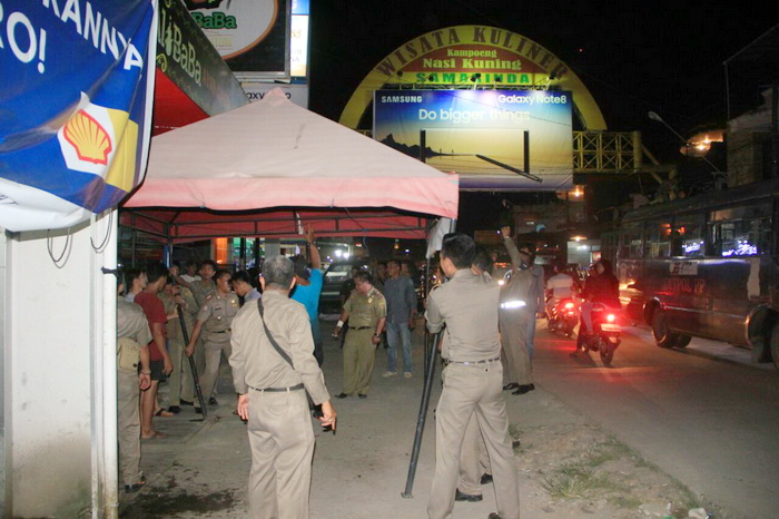 Hasilnya, puluhan rombong, meja, kursi, tenda dan kelengkapan berdagang lainya diamankan Satpol PP.