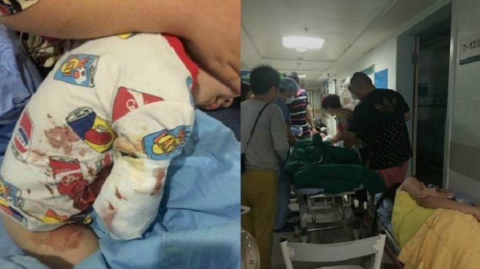 Setelah harimau melepas gigitannya, balita tersebut segera dilarikan ke rumah sakit.