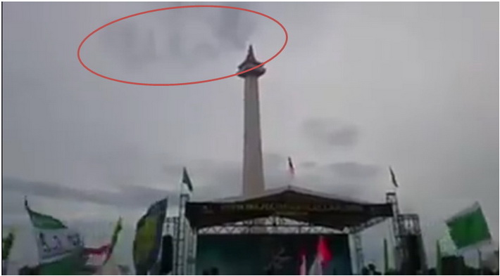 Sebuah video beredar saat Reuni 212 berlangsung, tepat di puncak Monas terlihat awan membentuk lafaz Allah.