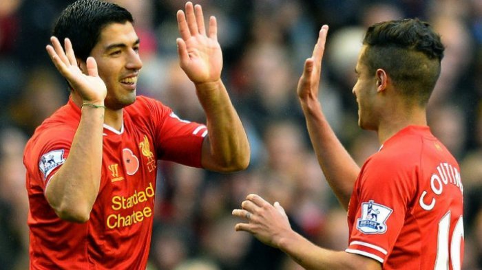 Coutinho bergabung dengan Liverpool pada 30 Januari 2013, sementara Suarez hengkang 11 Juli 2014.