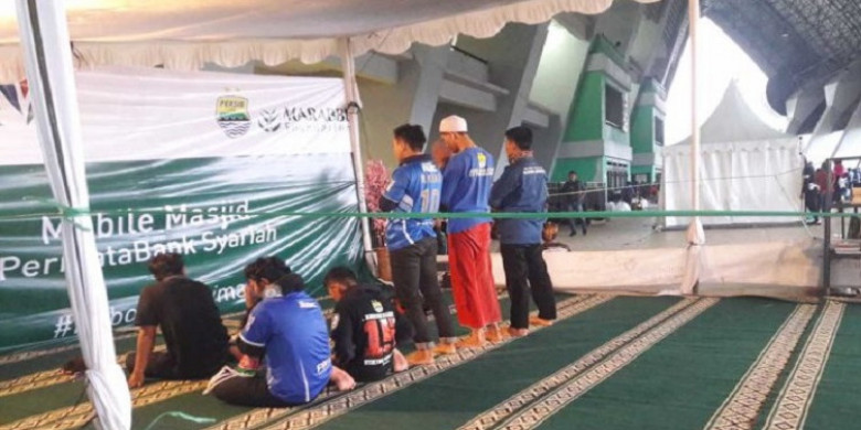 Di Tengah Hiruk Pikuk Stadion GBLA, Kawanan Bobotoh Shalat Bareng di Mobile Masjid