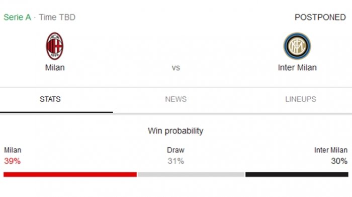 Derby della Madonnina antara AC Milan dan Inter, yang tadinya dijadwalkan berlangsung Senin (5/3/2018) dini hari WIB, termasuk pertandingan yang ditunda.