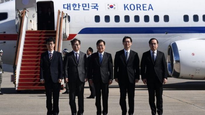 Delegasi 10 anggota tersebut dipimpin oleh direktur keamanan nasional Moon Jae-in Chung Eui-yong.