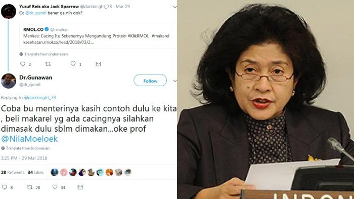 Menanggapi hal tersebut, seorang dokter Urologist (bedah saluran kemih dan reproduksi pria), Gunawan mengatakan,"Coba bu menterinya kasih contoh dulu ke kita , beli makarel yg ada cacingnya silahkan dimasak dulu sblm dimakan...oke prof @NilaMoeloek"