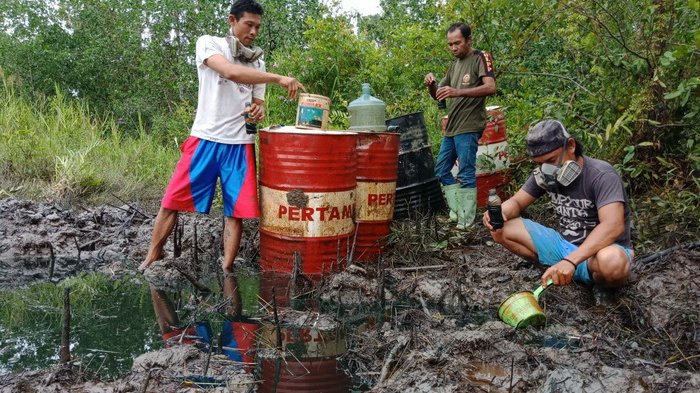 Warga Temukan Sumber Keluarnya Minyak Mentah di Sungai Nenang