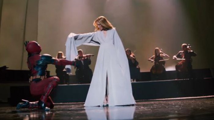 Kapan lagi bisa menyaksikan superhero nyentrik, Deadpool, menari diiringi suara merdu Ratu Balada Film Blockbuster Celine Dion?