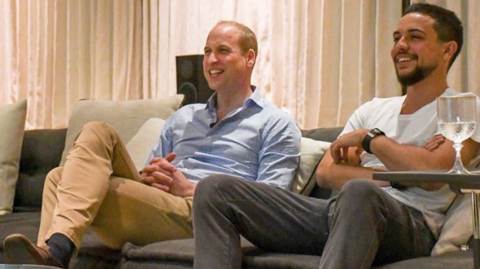 Diketahui William menonton tayangan ulang bersama putra mahkota Jordania, Hussein bin Abdullah setelah makan malam di Istana Beit Al Urdun