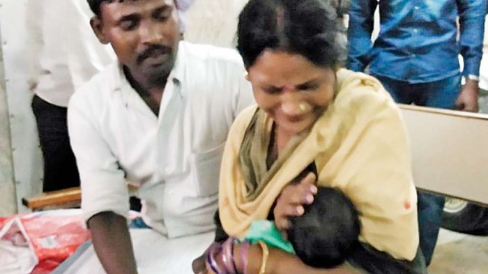 Bayi, dua bulan, meninggal dunia terjebab dua jam dalam amblunas yang pintunya macet.Peristiwa ini depan Rumah Sakit di Raipur India.