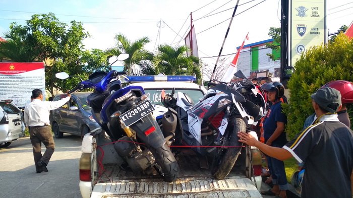 Kendati bagian depan mobil sudah ringsek, namun sopir tetap enggan untuk menghentikan kendaraanya, bahkan motor Brigpol Yudi sempat terseret sekitar 1 kilometer, yang membuat motor berwarna putih itu rusak berat.