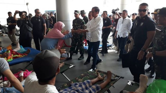 Ketika melihat Jokowi, sejumlah korban yang melihatnya mendekat mencoba bangun dari tempat mereka berbaring. Namun, Jokowi langsung mencegahnya, lalu mendekat dan menyalami mereka.