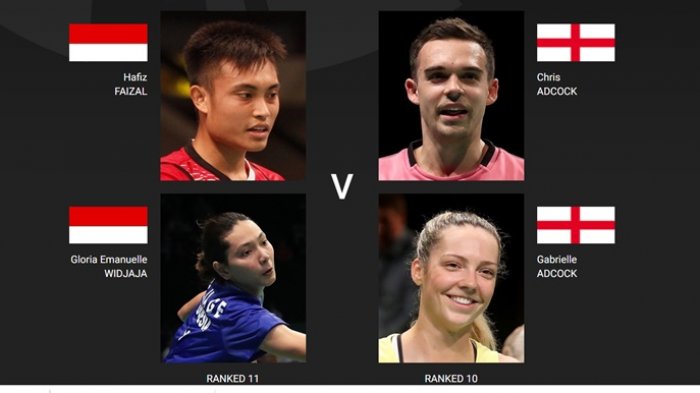 Pasangan ganda campuran Indonesia, Hafiz Faizal/Gloria Emanuelle Widjaja berhadapan dengan pasangan suami istri Chris Adcock/Gabrielle Adcock dari Inggris.