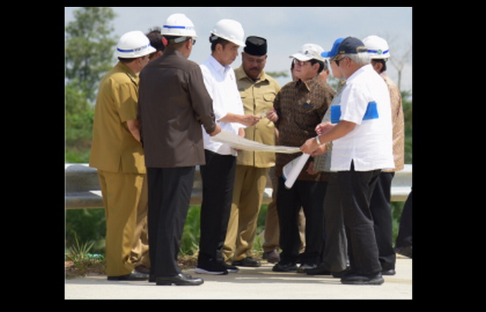 Sselain meninjau lokasi selama kurang lebih 20 menit, Presidein Jokowi juga mendengarkan paparan dan melihat-lihat peta wilayah.