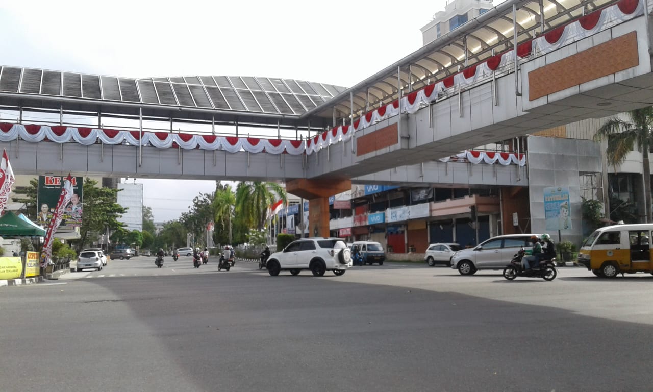 Kondisi Jembatan Penyeberangan Orang di kawasan pusat bisnis Kota Balikpapan tepatnya di Plaza Balikpapan, Jl Jenderal Sudirman, Kota Balikpapan Provinsi Kalimantan Timur pada Rabu (28/8/2019) pagi.