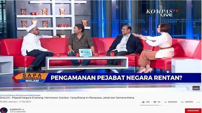 Awalnya, pembawa acara Sofie Syarief meminta pendapat peneliti LIPI Hermawan Sulistyo terkait penusukan Wiranto.