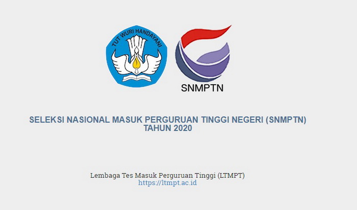 Lembaga Tes Masuk Perguruan Tinggi ( LTMPT) yang ditunjuk sebagai penyelenggara Seleksi Nasional Masuk Perguruan Tinggi Negeri (SNMPTN) 2020 telah mengeluarkan informasi melalui laman resminya https://web.snmptn.ac.id.