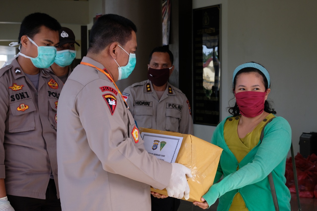 Kapolda Kalimantan Utara (Kaltara), Brigjen Pol Indrajit, membagikan sembako kepada sejumlah warga kurang mampu di Kaltara, Sabtu (11/4/2020).