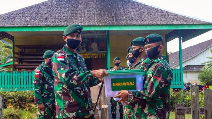 TRIBUNKALTIM.CO, LONG BAGUN - Komandan Satuan Penugasan Batalyon Infanteri Raider 200/BN Mayor Inf Andy Irawan, SH menyerahkan bingkisan lebaran dari Panglima TNI Marsekal TNI Dr. (H.C.) Hadi Tjahjanto, S.I.P. dan dari Kepala Staf Angkatan Darat (Kasad) Jenderal TNI Andika Perkasa untuk memberikan semangat kepada para prajurit yang menjaga wilayah perbatasan RI-MLY di sektor Kaltim dan Kaltara.