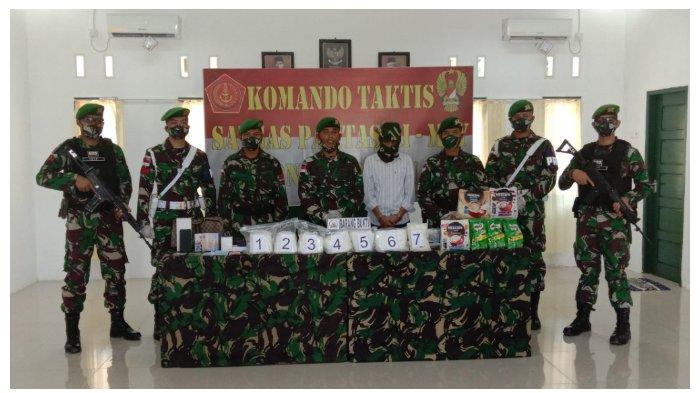 Satgas Pamtas Yonif 623/BWU Pos Aji Kuning Amankan Kurir 7 Kg Sabu, Ternyata Suruhan WN Malaysia