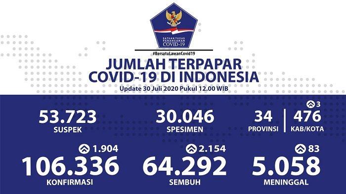 TRIBUNKALTIM.CO - Inilah update sebaran virus corona atau covid-19 di Indonesia terbaru per Kamis (30/7/2020).
