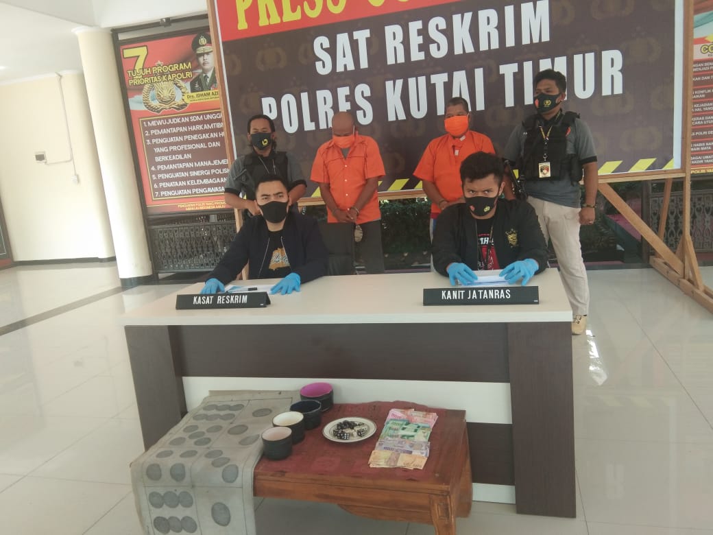 Kapolres Kutai Timur, AKBP Indras Budi Purnomo didampingi Kasatreskrim AKP Abdul Rauf mengatakan pengungkapan praktik perjudian bermula dari penyelidikan tim macan Sangatta, beberapa hari belakangan ini.