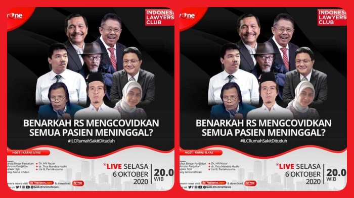 Link Live Streaming Indonesia Lawyers Club ( ILC ) TV One malam ini Selasa 6 Oktober 2020, ada Benarkah RS Mengcovidkan Semua Pasien Meninggal?