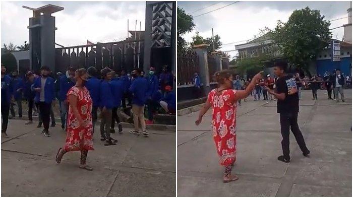 TRIBUNKALTIM.CO - VIRAL di TikTok, seorang emak berdaster datangi sang anak di tengah mahasiswa yang sedang berdemo menolak UU Cipta Kerja, di Samarinda.