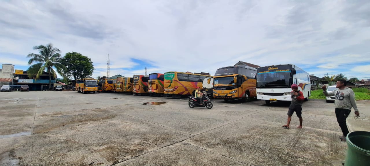 Bus yang biasa melayani penumpang, hanya terparkir di sekitar area terminal.