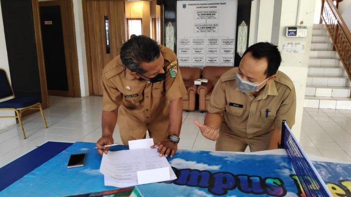TRIBUNKALTIM.CO, TANA PASER- Mantan Wakil Bupati Paser H. Kaharuddin menyerahkan jabatan Pelaksana Harian (Plh) Bupati Paser kepada Sekretaris Daerah (Sekda) Katsul Wijaya, Selasa (23/2/2021).