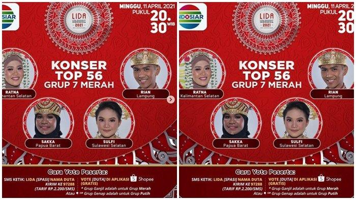 Berikut ini hasil LIDA 2021 babak Top 56 Grup 7 Merah, yang tayang tadi malam, Minggu 11 April 2021.