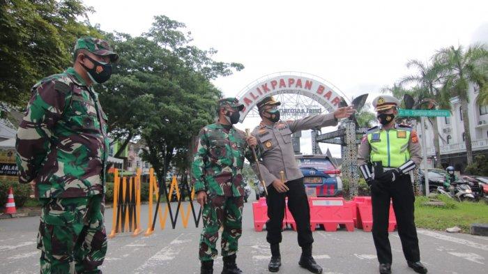 Pangdam VI Mulawarman, Mayjend TNI Heri Wiranto, melakukan pantauan di pos penyekatan titik simpang Balikpapan Baru, Kota Balikpapan.