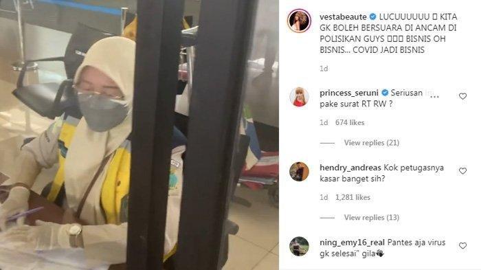 "Vaksin nggak guna!!! PCR nggak guna!!! So jangan vaksin jangan PCR jangan terbang genk lucunya negeri ini," tulis Gebby dalam akun Instagramnya, hari Kamis 22 Juli 2021.