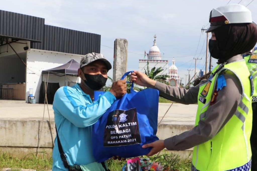 Operasi Patuh Mahakam 2021, Ditlantas Polda Kaltim Berbagi Paket Bansos