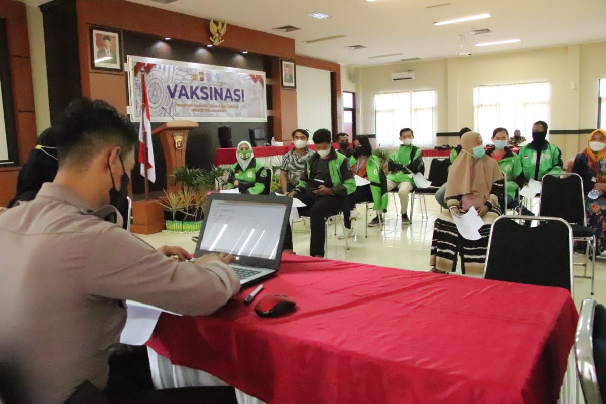 "Kami menargetkan 200 pengemudi angkutan umum dan ojol untuk di lakukan vaksinasi (hari ini)," terang Kompol Dian Wisnu Ristanto.