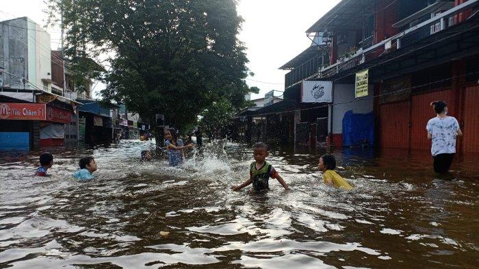 TRIBUNKALTIM.CO,SAMARINDA- Fenomena banjir menjadi wahana dadakan bagi anak-anak banyak kita temui di beberapa wilayah Indonesia, termasuk Samarinda, Kalimantan Timur.