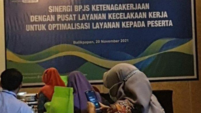 TRIBUNKALTIM, BALIKPAPAN - BPJS Ketenagakerjaan atau Badan Penyelenggara Jaminan Sosial Ketenagakerjaan atau BP JAMSOSTEK Kantor Cabang Balikpapan mengadakan acara bersama dengan Rumah Sakit Pusat Layanan Kecelakaan Kerja (PLKK) di Grand Jatra Hotel Balikpapan, Sabtu (20/11/2021).
