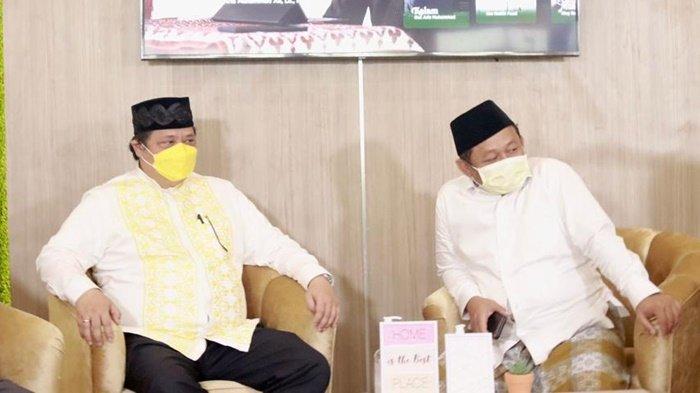 TRIBUNKALTIM.CO - Menko Perekonomian Airlangga Hartarto berkunjung ke Pesantren Progresif Bumi Shalawat di Sidoarjo, sowan ndalem KH Agoes Ali Masyhuri (Gus Ali), Minggu (20/2/2022).