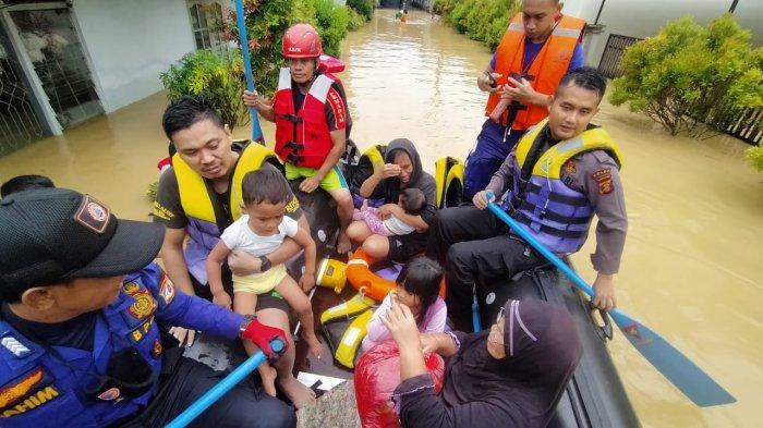 Bolak-balik Evakuasi Warga di Gang Mufakat Balikpapan, Polairud Polda Kaltim Kerahkan 2 Perahu Karet